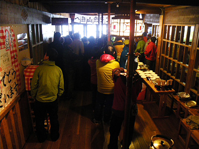 それから、中に入り、まずはザックを下ろしてアイゼン外して、雪落としのたわしで雪を落として、ようやく受付( ´ω`)