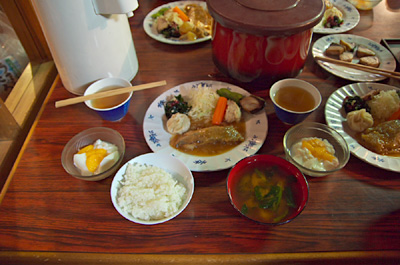 そして、夕食の時間…今日はお餅は食べたけど、ガッツリなお昼ご飯食べてないのでかなり腹ペコです(^_^; なので、楽しみにしてました・・・・・・・あー、夕食メニューが思ったより質素な感じに思ったのはボクだけでしょうか?(@@;;;;